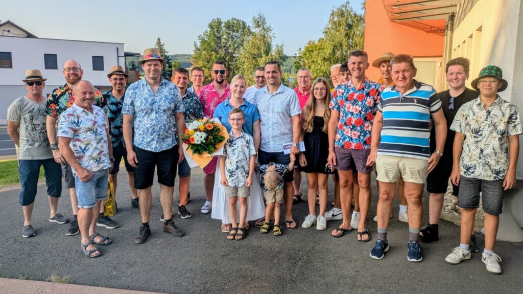 Bereits am 13.08. gratulierte eine Delegation der FF Lafnitz mit einer Jause und dem bekannten Spruchband. Auch am 14.08 wurde gemeinsam unter dem Motto „Beachparty“ im Gemeindezentrum mit dem Geburtstatgskind gefeiert. Wir bedanken uns für die Einladung und wünschen für die Zukunft alles Gute und vor allem viel Gesundheit.