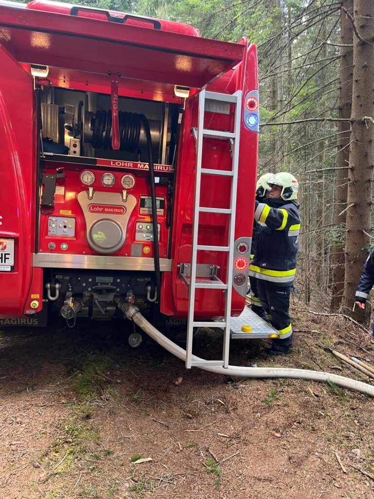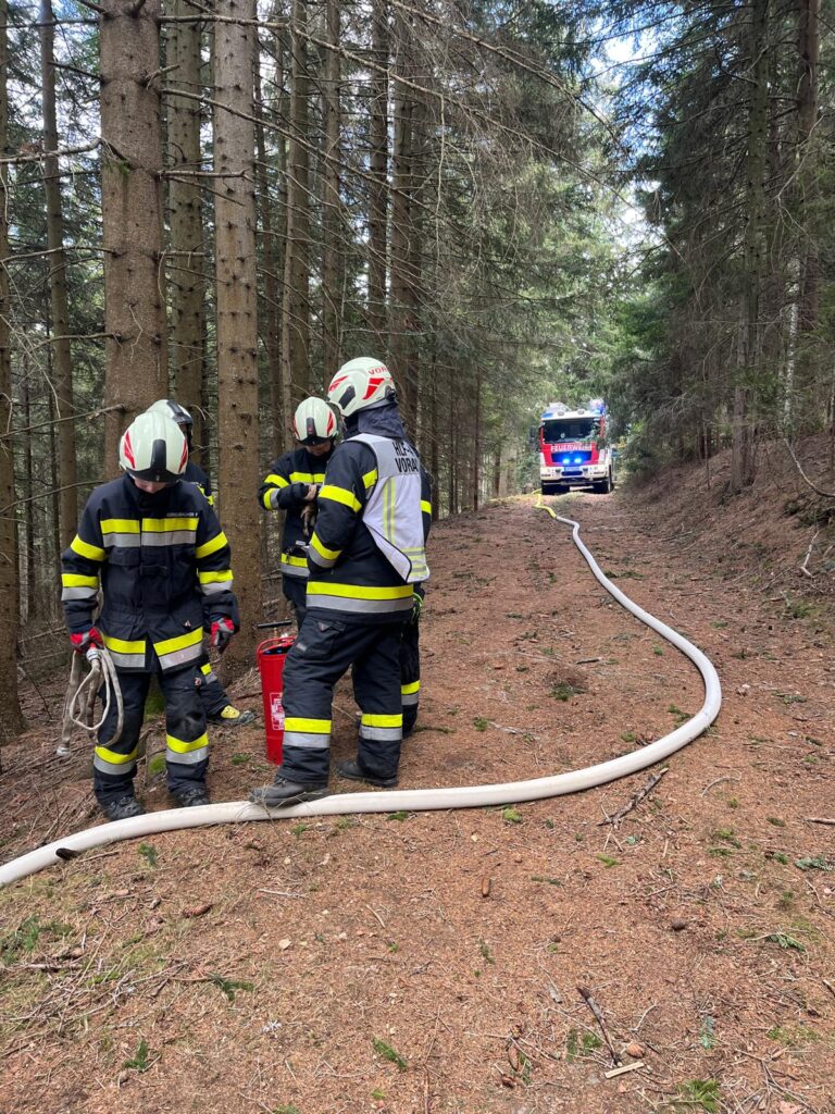Die Mannschaft rückte mit dem TLF und dem HLF zum Einsatzort aus, um die FF Grafendorf bei der Brandbekämpfung im unwegsamen Gelände zu unterstützen. Neben der FF Grafendorf war auch die FF Vorau sowie die Polizei am Einsatzort.